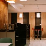 Zona equipada com micro-ondas, frigorífico e espaços de apoio para refeições rápidas e confortáveis no dia a dia.