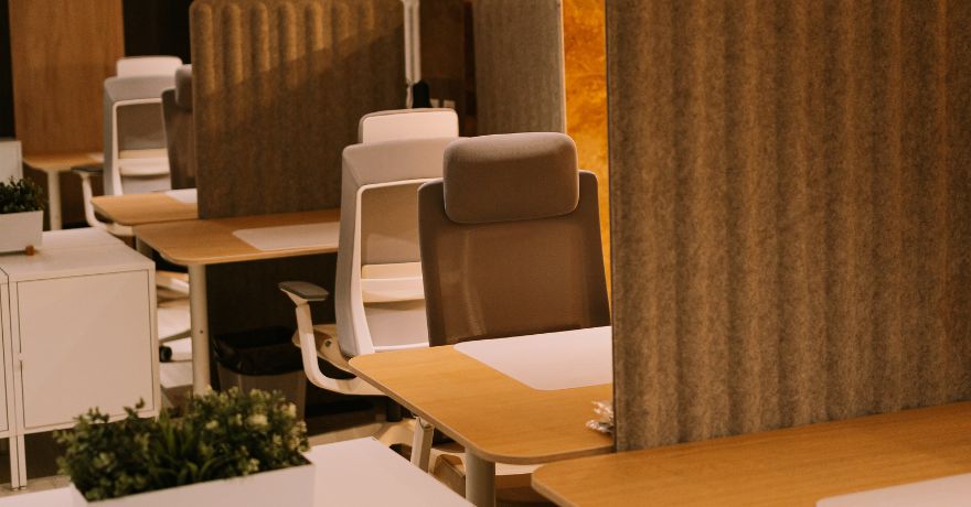 É um posto de trabalho individual reservado num open space, com acesso permanente e possibilidade de deixar o seu material.