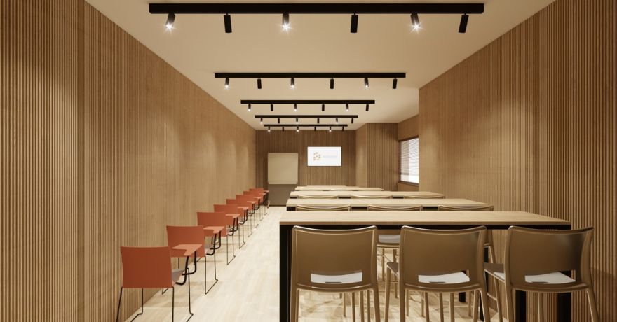 Sim. Temos salas preparadas para formação e pequenos eventos, com aluguer por hora ou por dia.